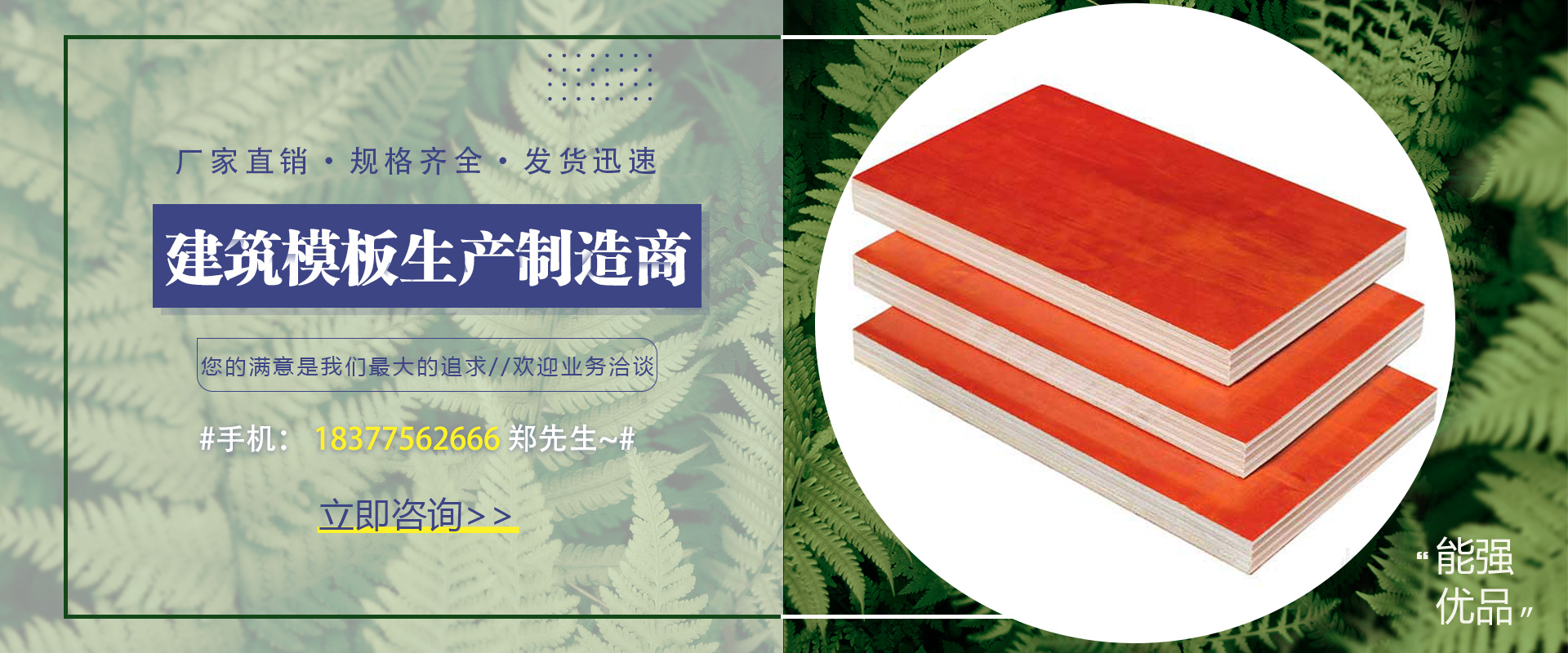 貴港市能強(qiáng)優(yōu)品木業(yè)有限公司,能強(qiáng)木業(yè)是一家專(zhuān)業(yè)做建筑模板廠(chǎng)家,位于森林蓄積量豐富的貴港市。具備出口資質(zhì),年出口量達(dá)百萬(wàn)張,工廠(chǎng)距離貴港港口僅兩公里路程。公司占地面積100多畝,初期投資5000多萬(wàn),現(xiàn)已發(fā)展員工300多人,年產(chǎn)量達(dá)500多萬(wàn)張,是當(dāng)?shù)匾患掖笾行推髽I(yè),主要經(jīng)營(yíng)建筑模板的生成和銷(xiāo)售,有旋切進(jìn)口面板,制膠等一條龍生產(chǎn)線(xiàn),優(yōu)質(zhì)的原材料,先進(jìn)的設(shè)備和制膠技術(shù)是優(yōu)質(zhì)產(chǎn)品的堅(jiān)實(shí)基礎(chǔ),加上以人為本的管理理念,使得企業(yè)生產(chǎn)的建筑模板堅(jiān)固耐用,產(chǎn)品質(zhì)量好,產(chǎn)品銷(xiāo)往全國(guó)各地,受到廣大建筑行業(yè)的好評(píng),在模板行業(yè)里十幾年的不懈努力及吃苦耐勞精神,使企業(yè)穩(wěn)扎穩(wěn)打,技術(shù)不斷提升,實(shí)力不斷壯大,公司發(fā)展迅速也離不開(kāi)每年加入新客戶(hù)及穩(wěn)定的老客戶(hù),也成為無(wú)數(shù)經(jīng)銷(xiāo)商邁向成功的合作伙伴。